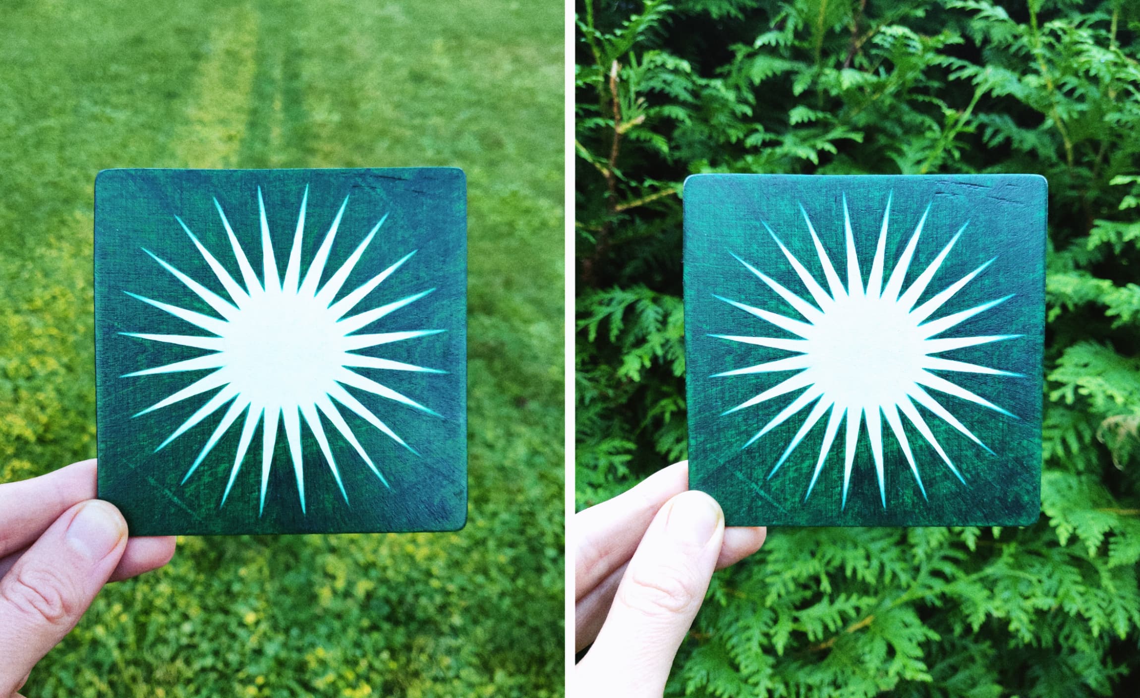 Roheline täht, õlimaal, 10,5 x 10,5 cm, vineeril